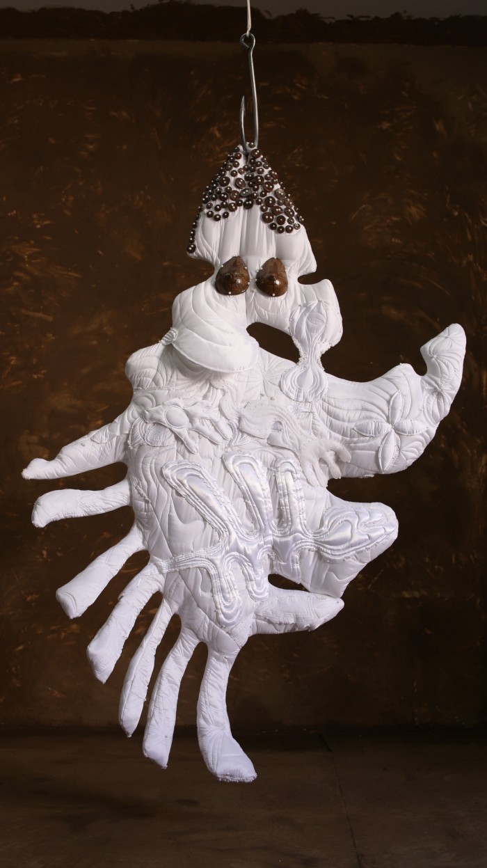 Manuel Brandazza / Dorado, 2022 / Organza cristal, taftán y seda matelasseada, perlas fantasÃa y cerámica