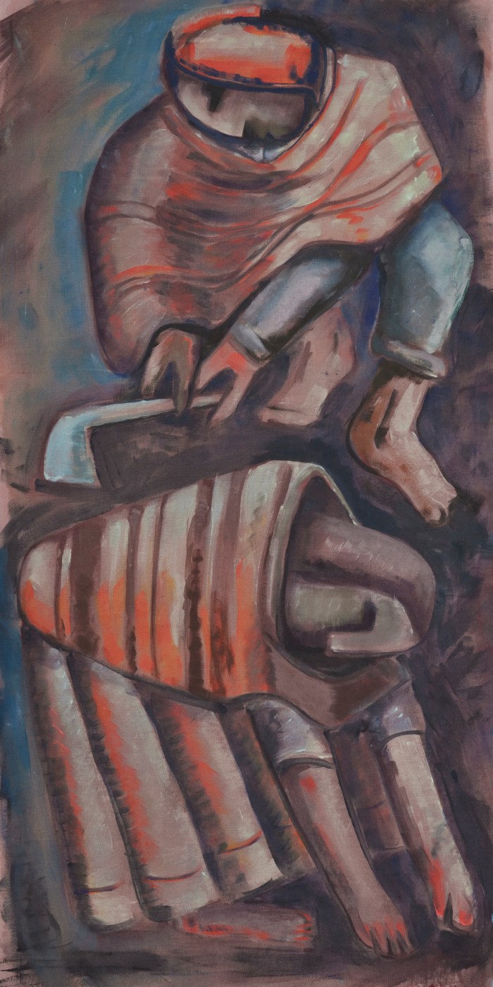 Iosu Aramburu / DÃa de campo XV (JMUE, 1952), 2023 / AcrÃlico sobre lino teñido / 120 x 60 cm