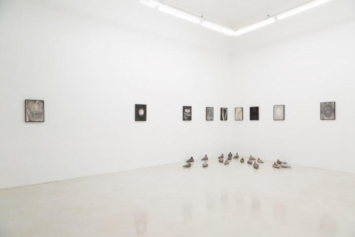 Sin tÃtulo, 2022 / Grafito, ferrite y tiza sobre tela / 256 x 158 cm